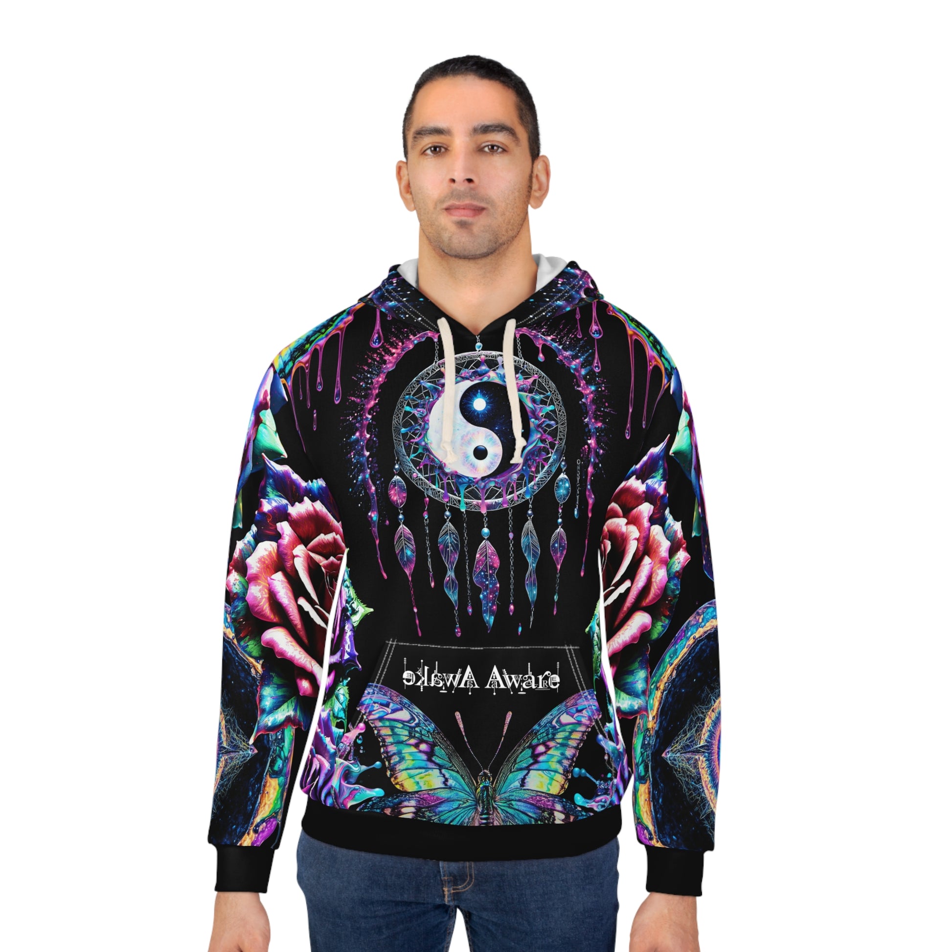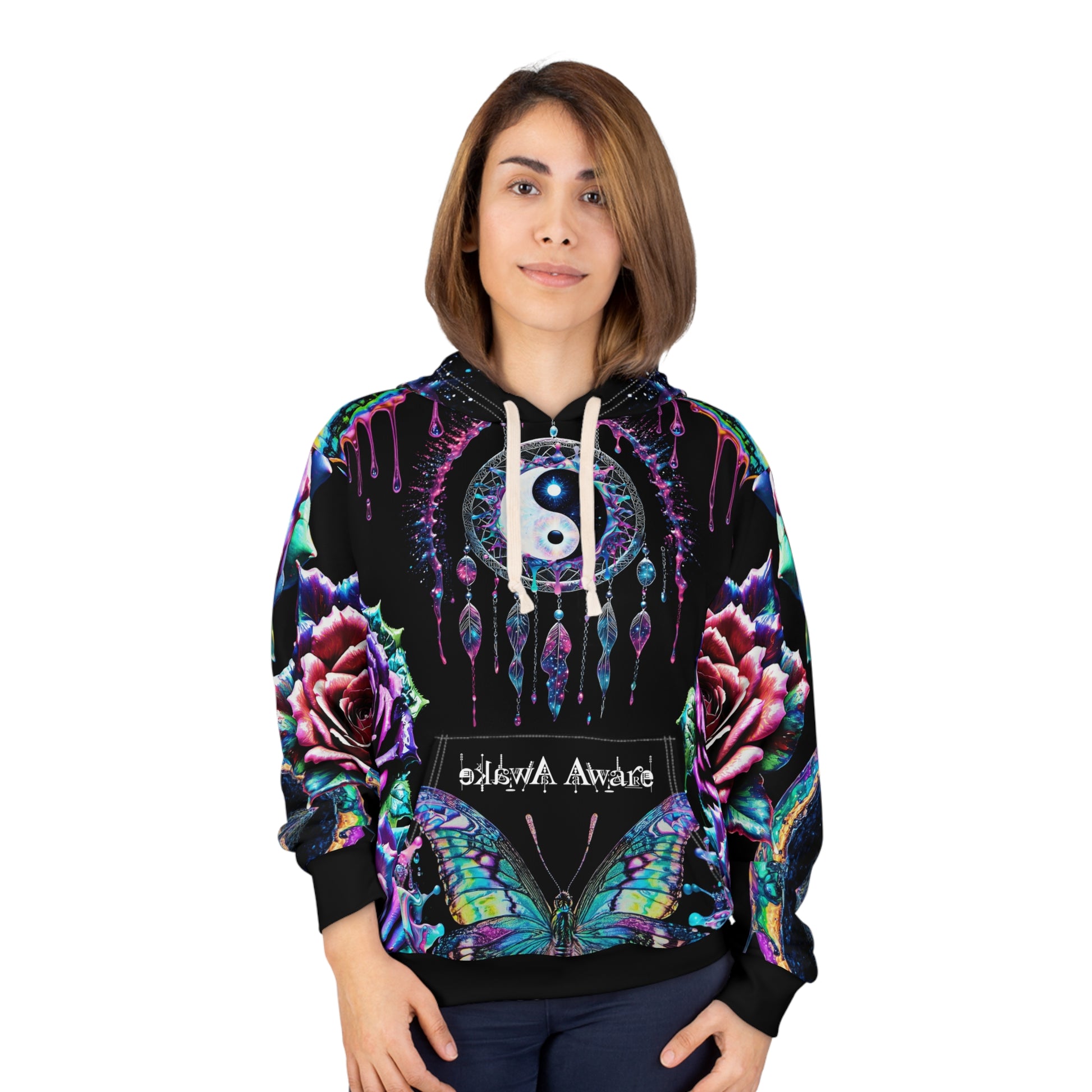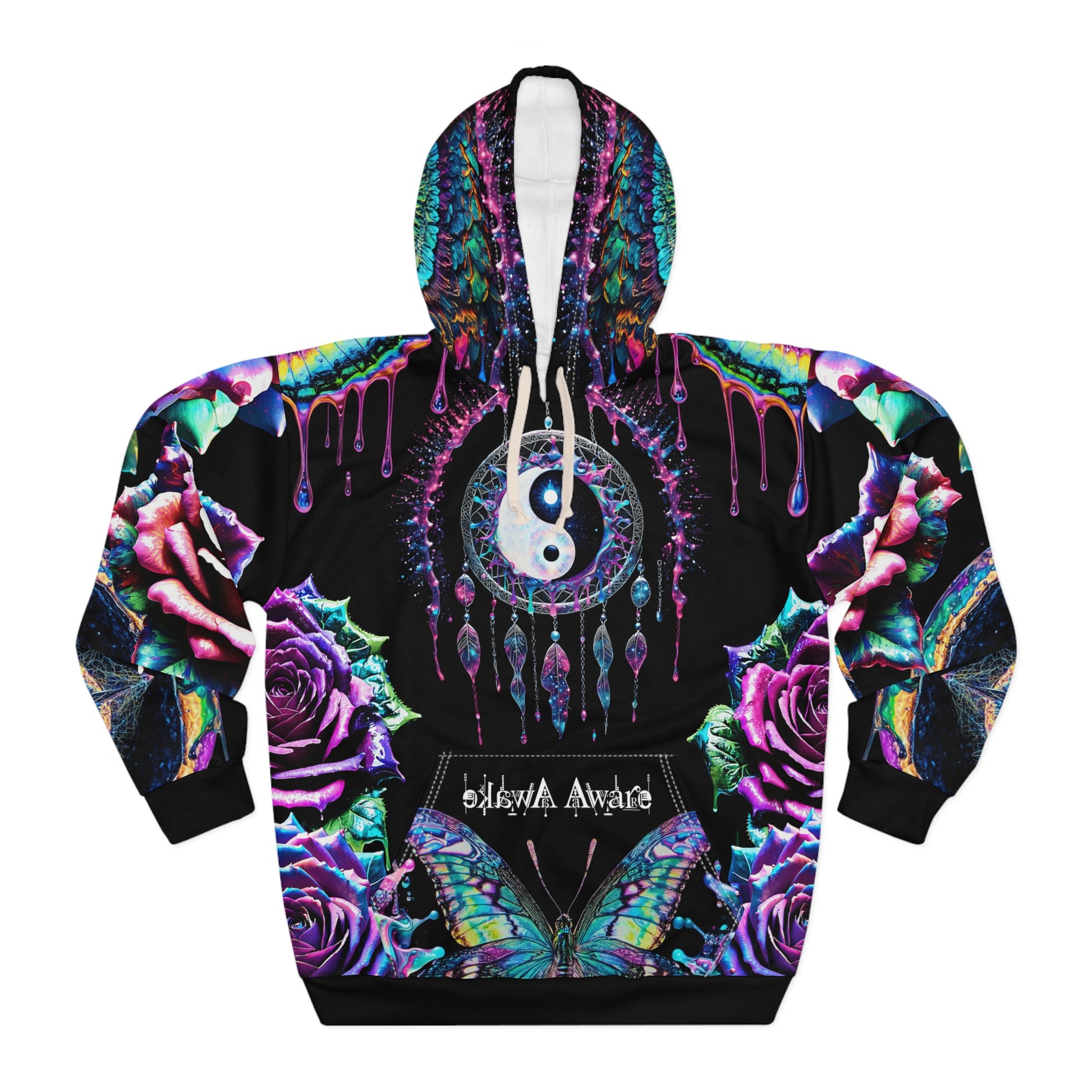 This Pullover Hoodie is made for warmth and comfort. Made to be easily customizable without white lines at the seams, this all-over print pullover hoodie is waiting for you to add a great design and it instantly becomes fashionable. It features a large front pocket, a hood with a drawstring, and is custom cut and sewn.