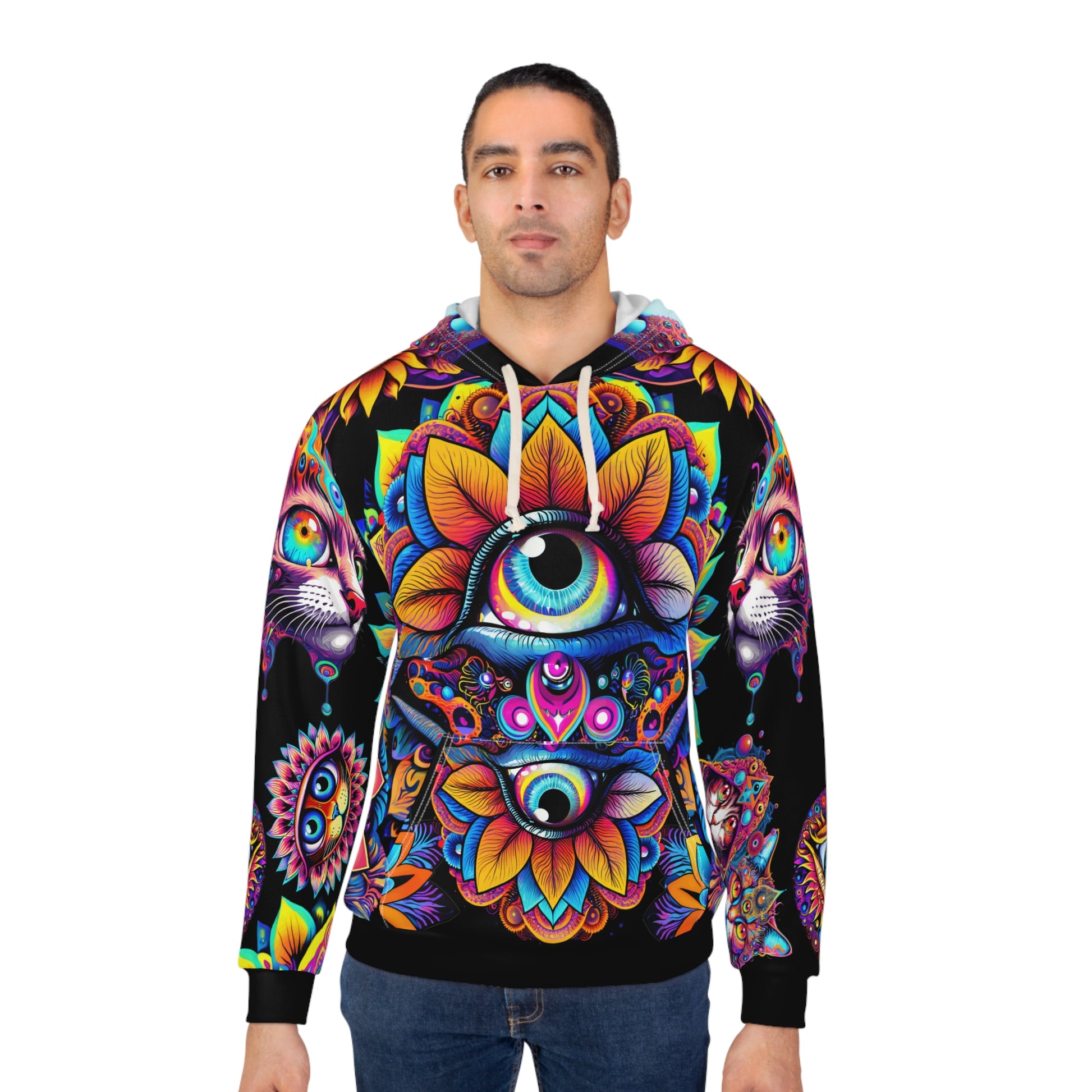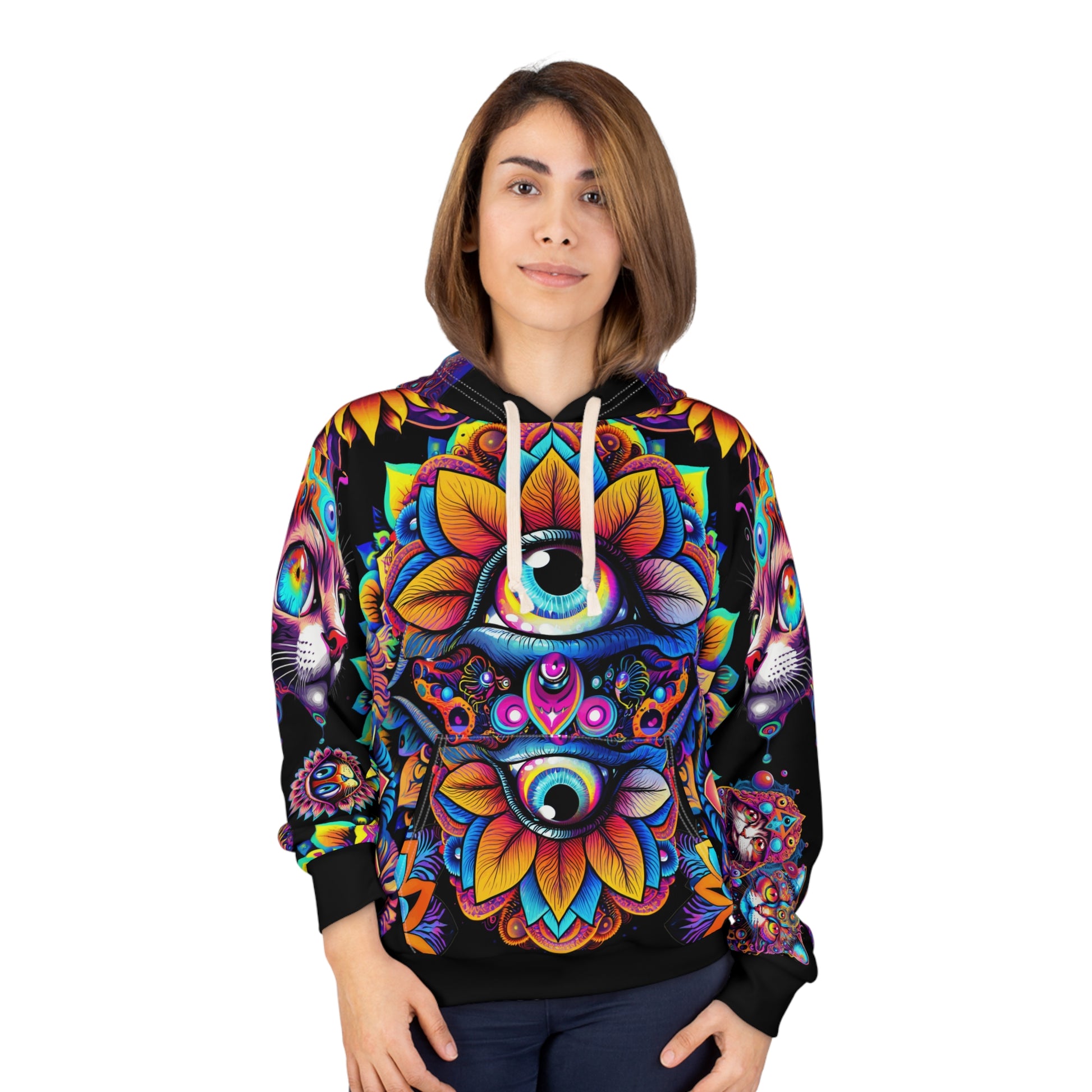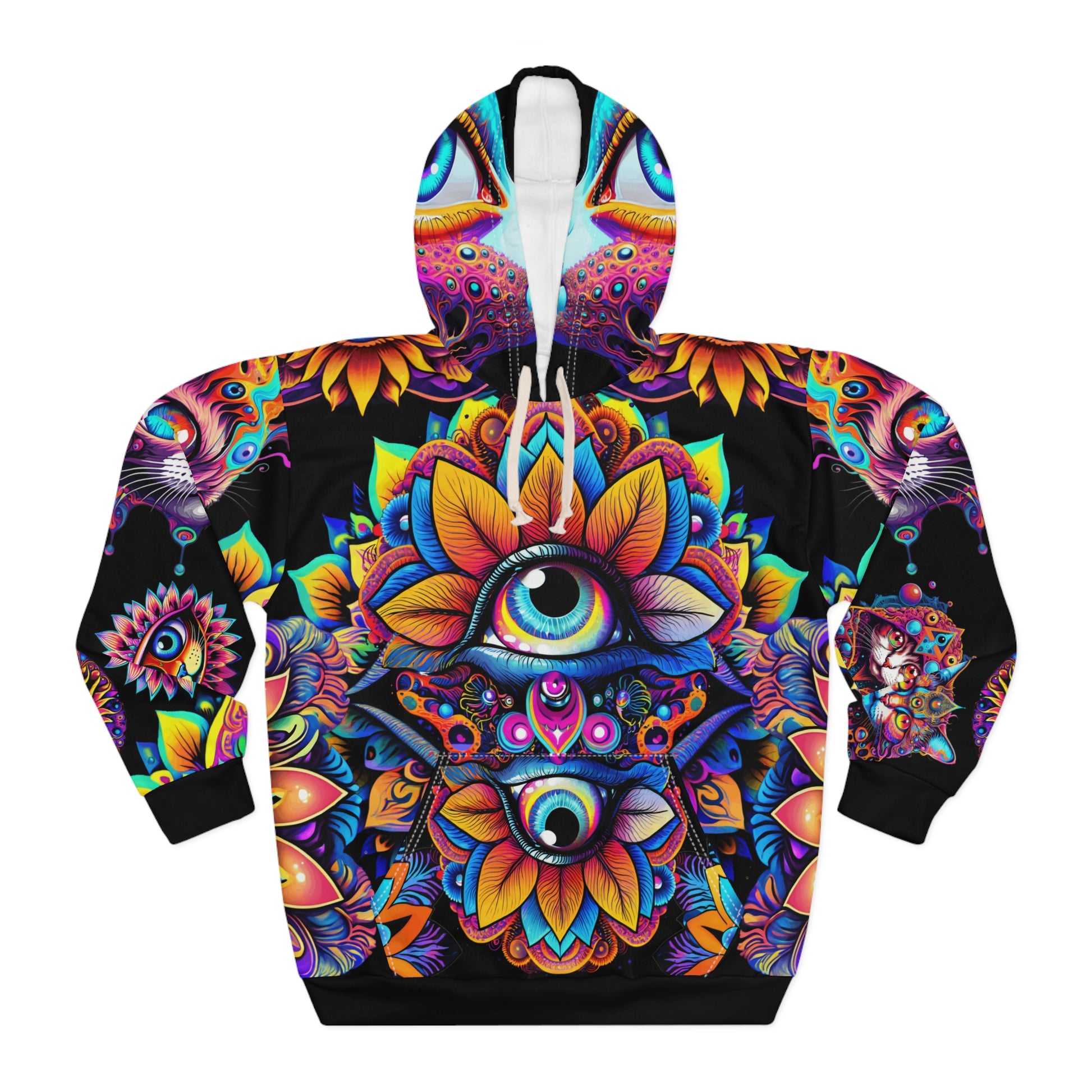 This Pullover Hoodie is made for warmth and comfort. It features a large front pocket, a hood with a drawstring, and is custom cut and sewn.